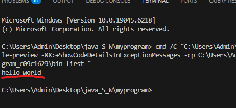 VS Code: Open the folder → open first.java → click “Run” above the main method.